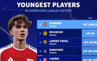 欧冠最年轻出场前10:道曼、穆科科、亚马尔前3,谢尔基第5